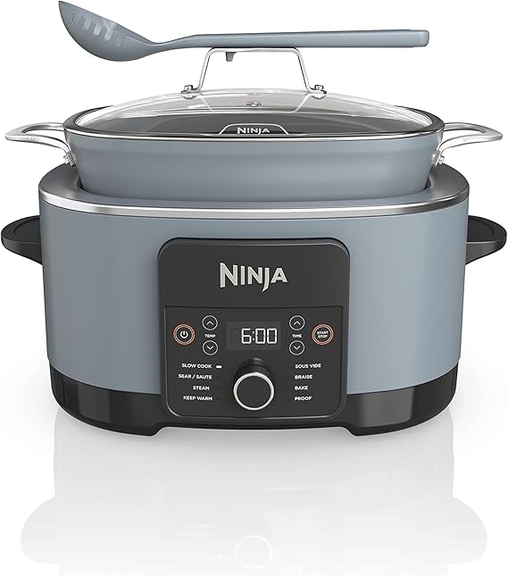 Ninja MC1001 Foodi PossibleCooker PRO 8.5 Quart Multi-Cooker, with 8-in-1 Slow Cooker, Dutch Oven, Steamer, Glass Lid Integrated Spoon, Nonstick, Oven Safe Pot to 500°F, Sea Salt Gray